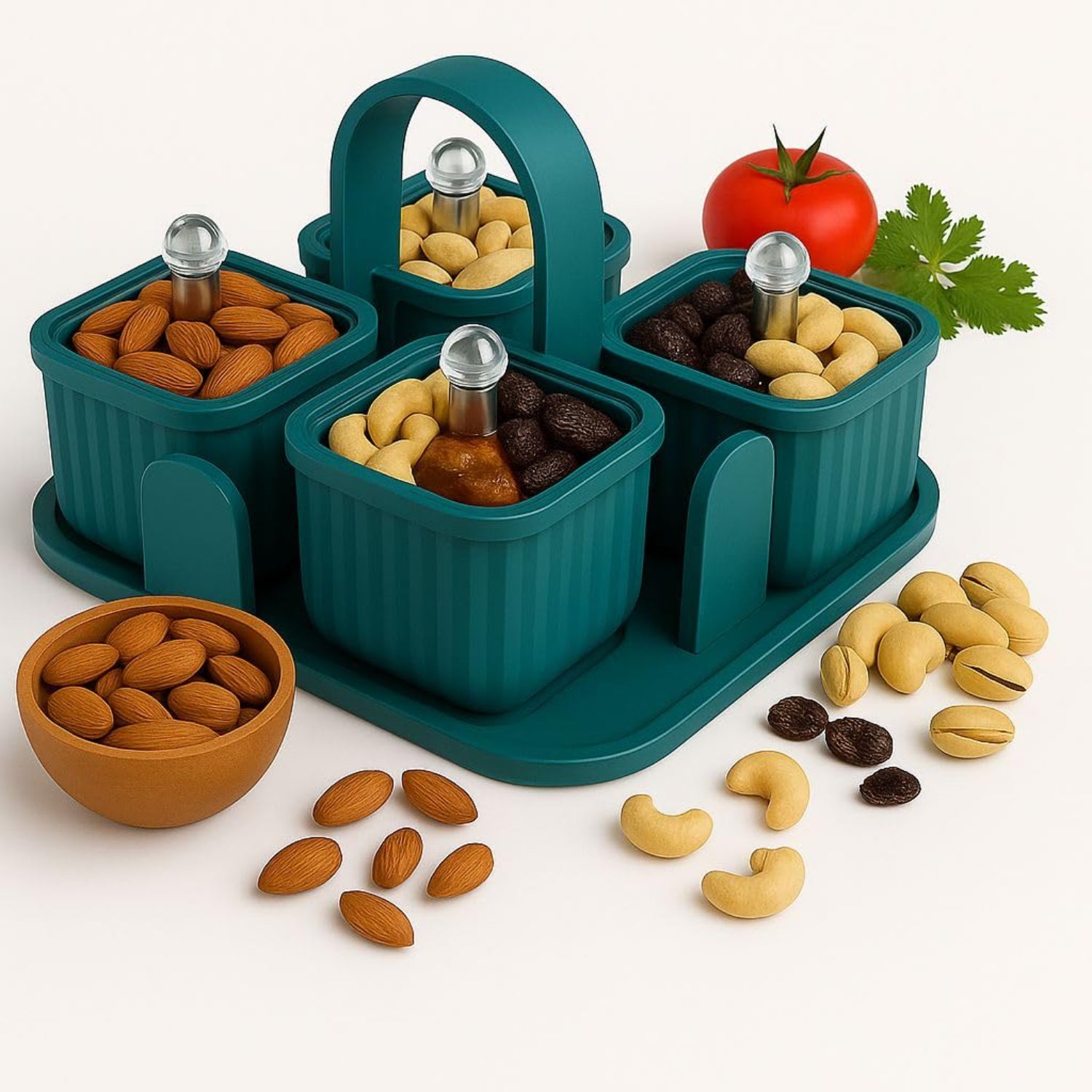 A cluttered counter can make cooking feel chaotic. The 4-Piece Storage Jar Set brings order and elegance back to your kitchen. Designed for both style and practicality, it includes four clear jars and a matching tray that keeps everything in place. Made from durable, food-grade plastic, these jars are lightweight, easy to clean, and perfect for storing spices, sugar, coffee, or snacks. Whether you’re a home chef perfecting your masalas or someone who loves a neat, coordinated kitchen, this set adds warmth, function, and a touch of design flair. Compact yet spacious, it’s your new countertop essential for everyday organization.